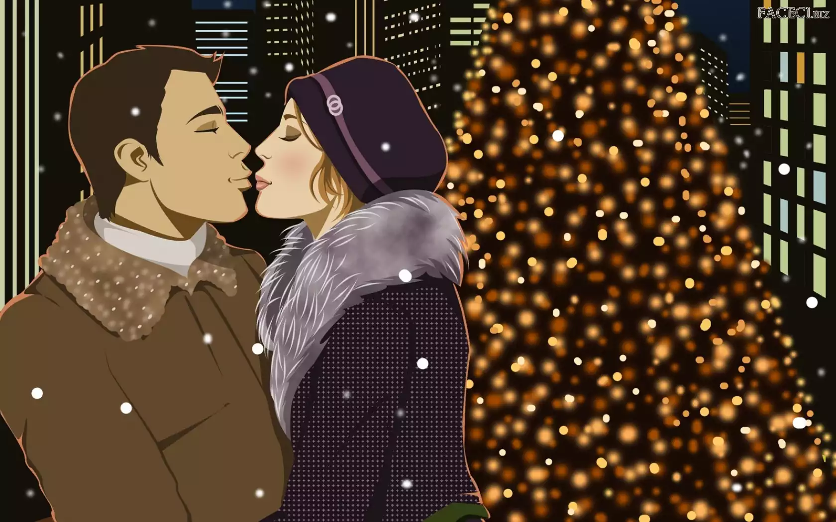 Para, Nowy, Pocałunek, Życzenia, Rok, Choinka - faceci.biz