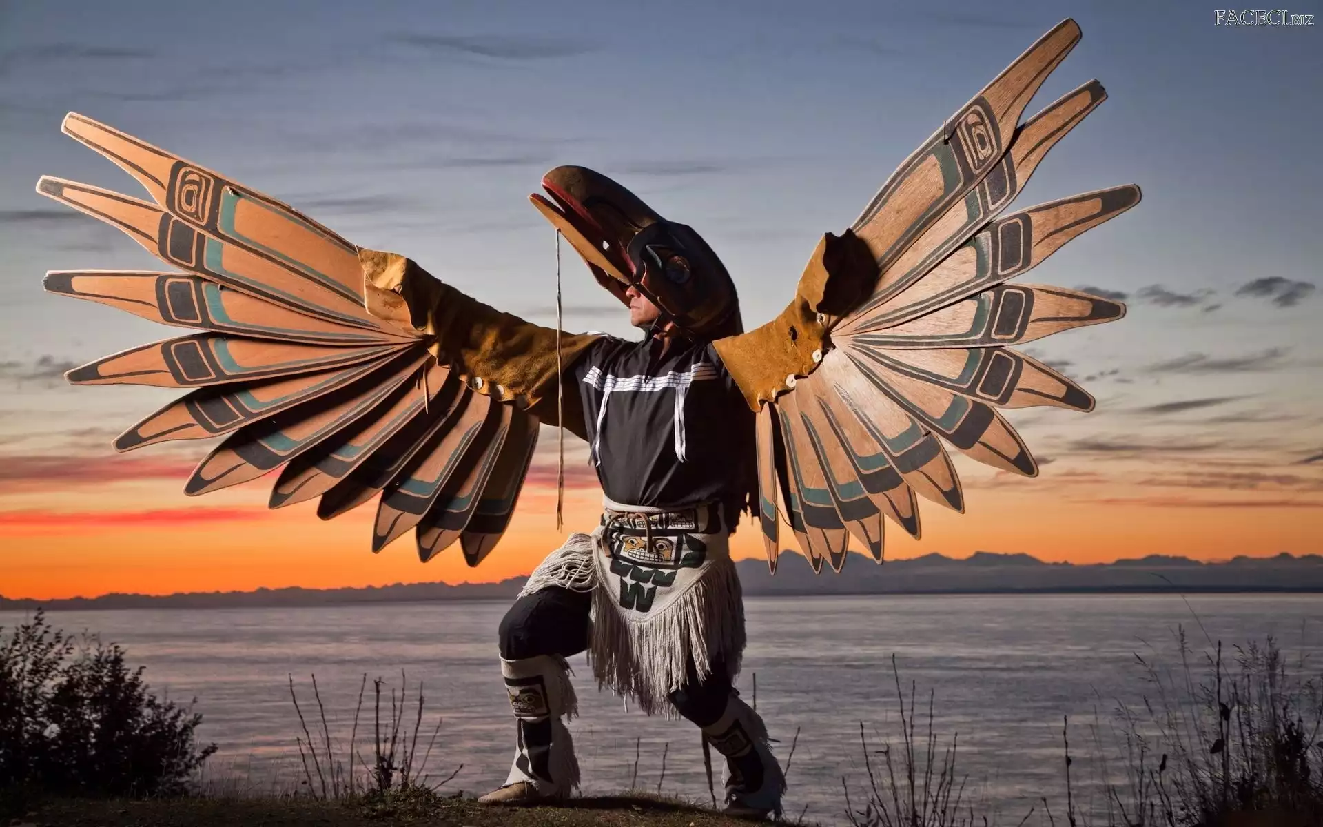 Słońca, Zachód, Kostium, Indianin, Taniec - faceci.biz